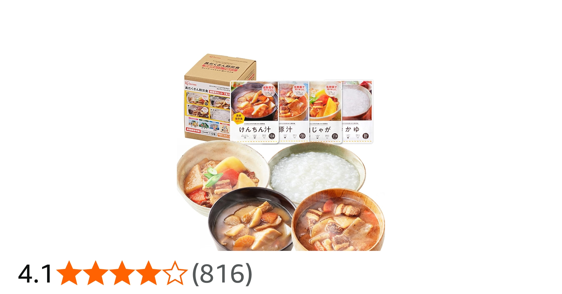 Amazonで「ローリングストック」と検索すると、保存に適した食べ物が色々と出てきます。チェックしてお好みのものが無いか確認してみてください。