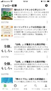ホーム画面をタップするとフォローしている記事の一覧が表示されます。
