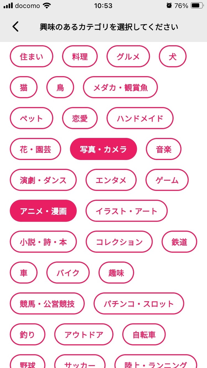 画面右上にある歯車マークをタップしてみたら、『興味のあるカテゴリの編集』がありました。