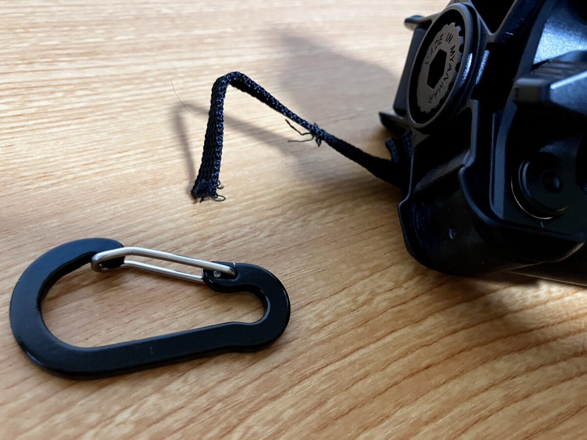 最初から付属のカラビナのストラップもしれっとちぎれていました。