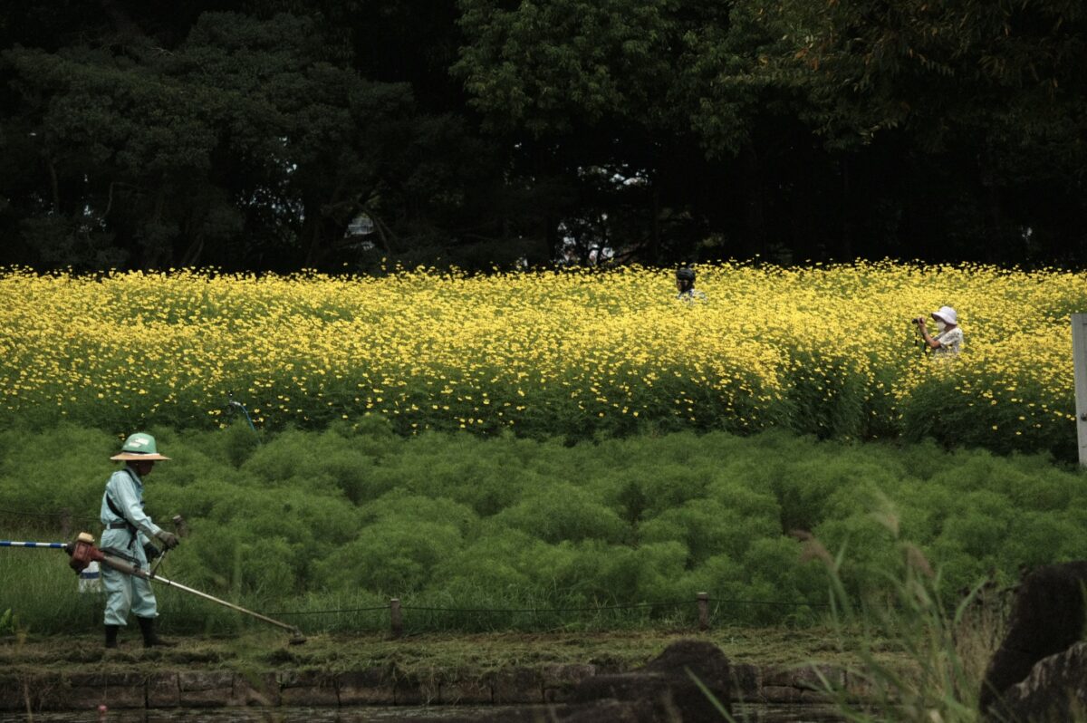 こういう望遠スナップも好きです。まるでナウシカの婆様がつぶやいていた「金色の野」みたいに一面黄色です。