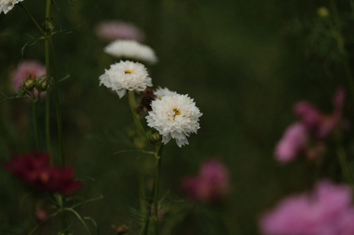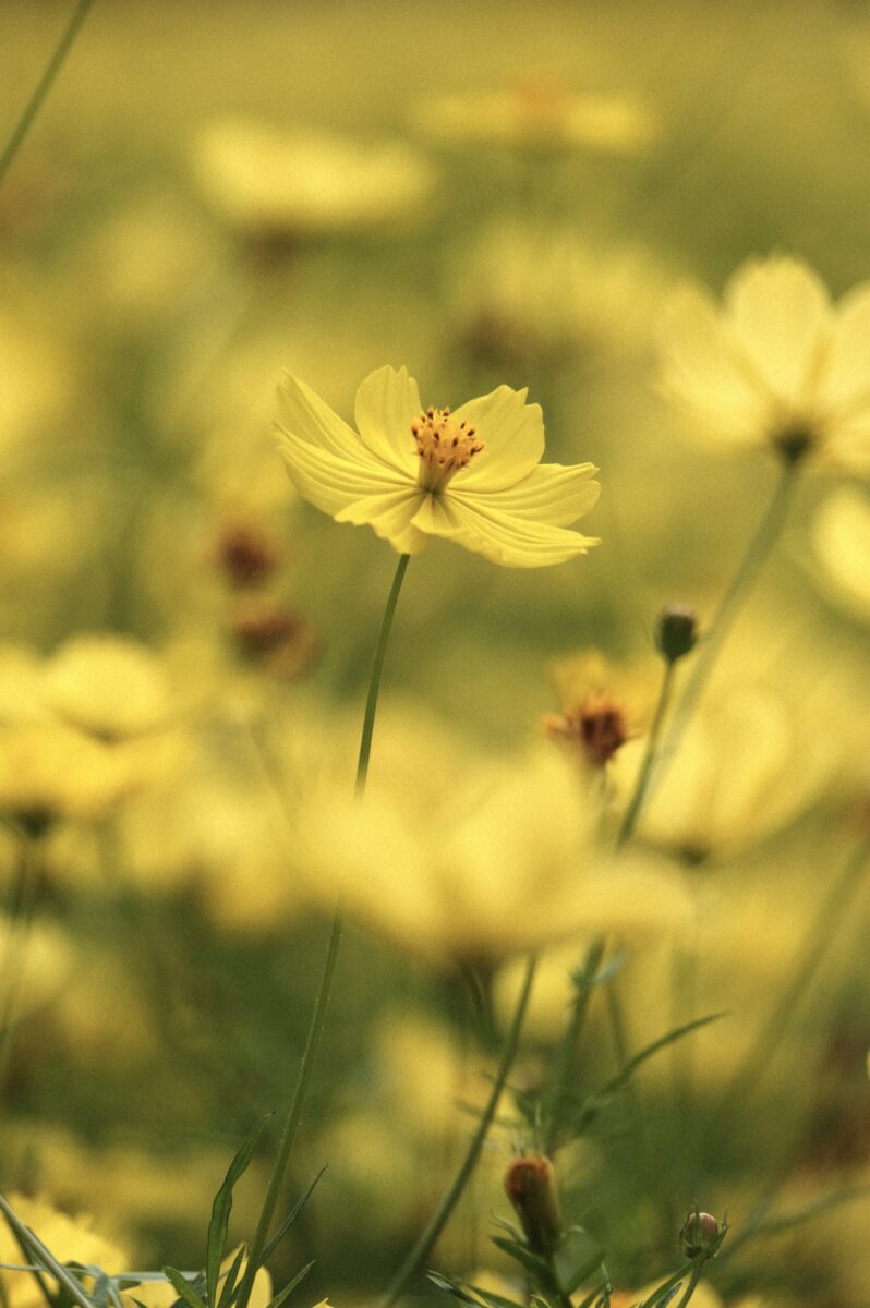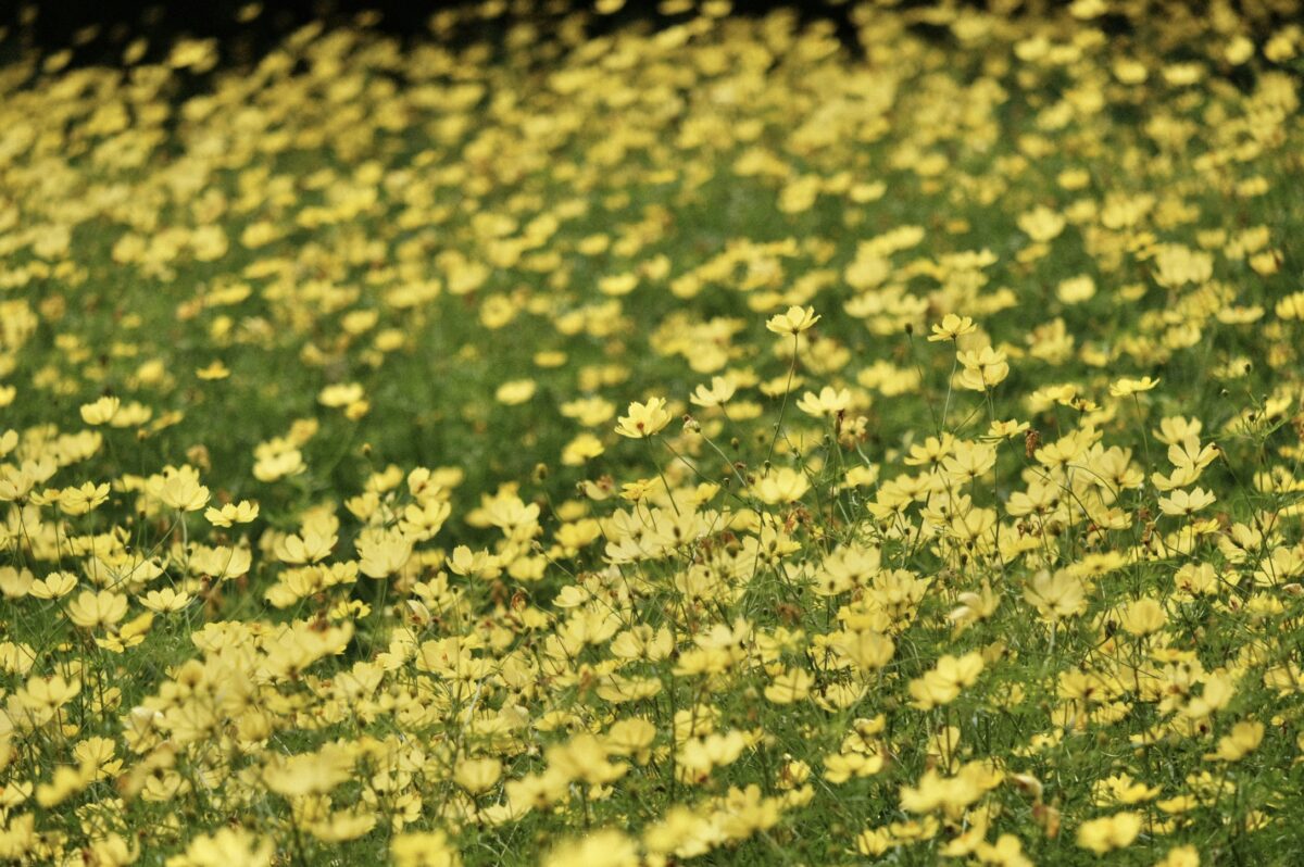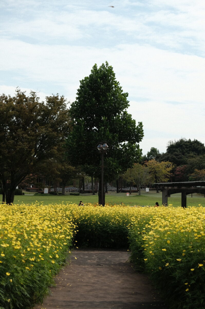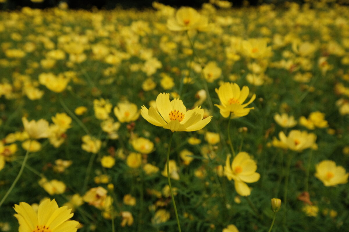 また、クローズアップ撮影もしやすいです。望遠ズームが単焦点レンズより良いところは、お花畑の中の方にあるキレイに咲いた花にもグッと寄れるところです。