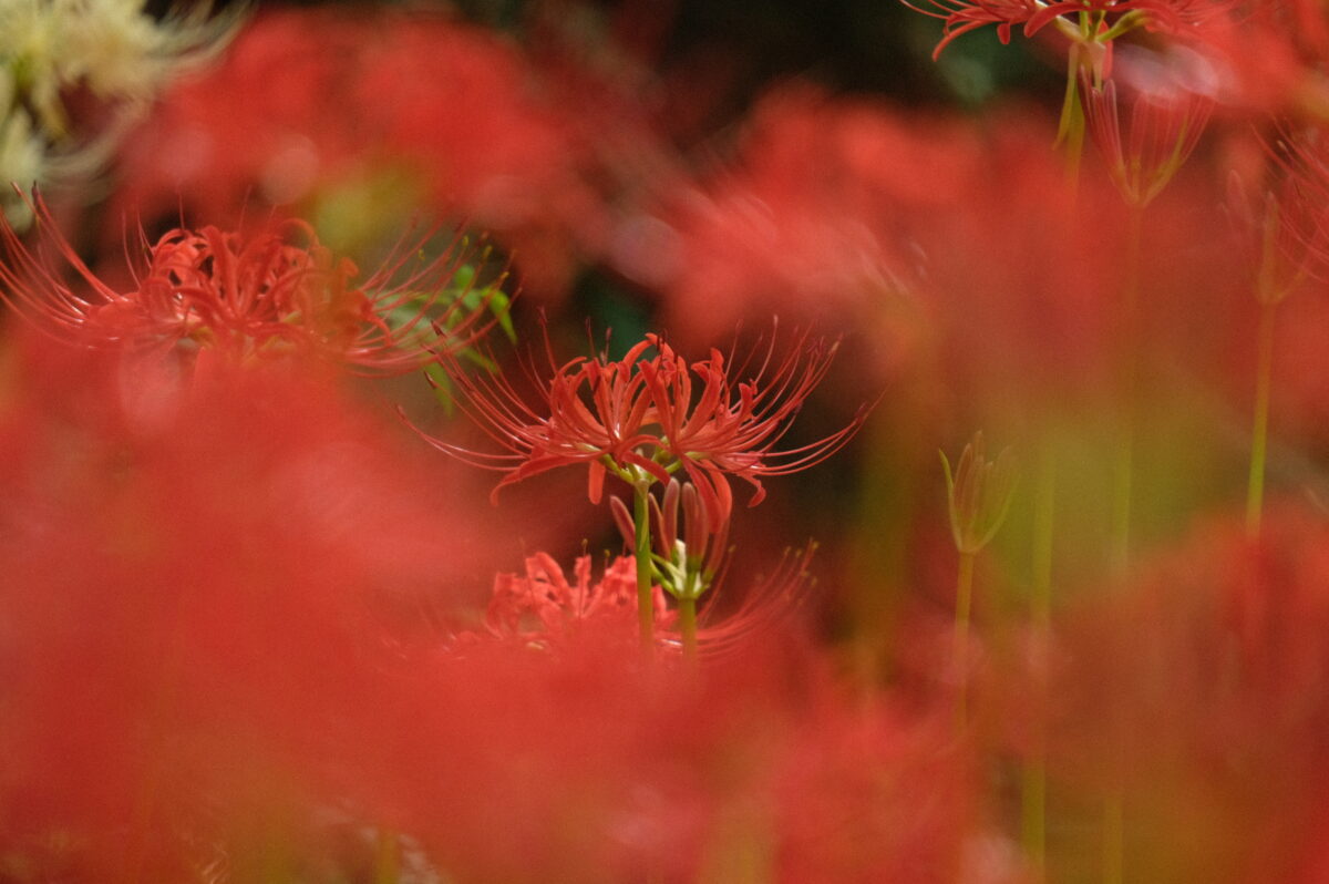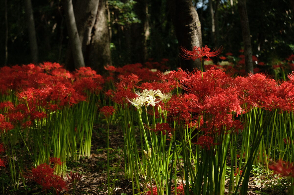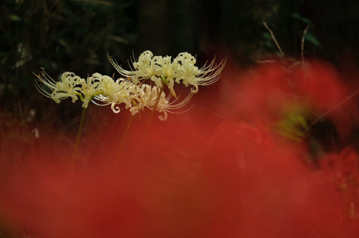 所々に紛れている白の彼岸花を見つけると、ついシャッターを押してしまいますね。