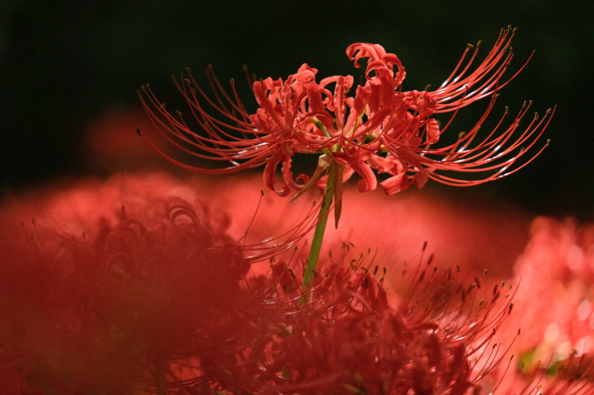 赤と黒の組み合わせに、前ボケも入れてみました。彼岸花の毒性と美しさの両方を現しているようなイメージです。