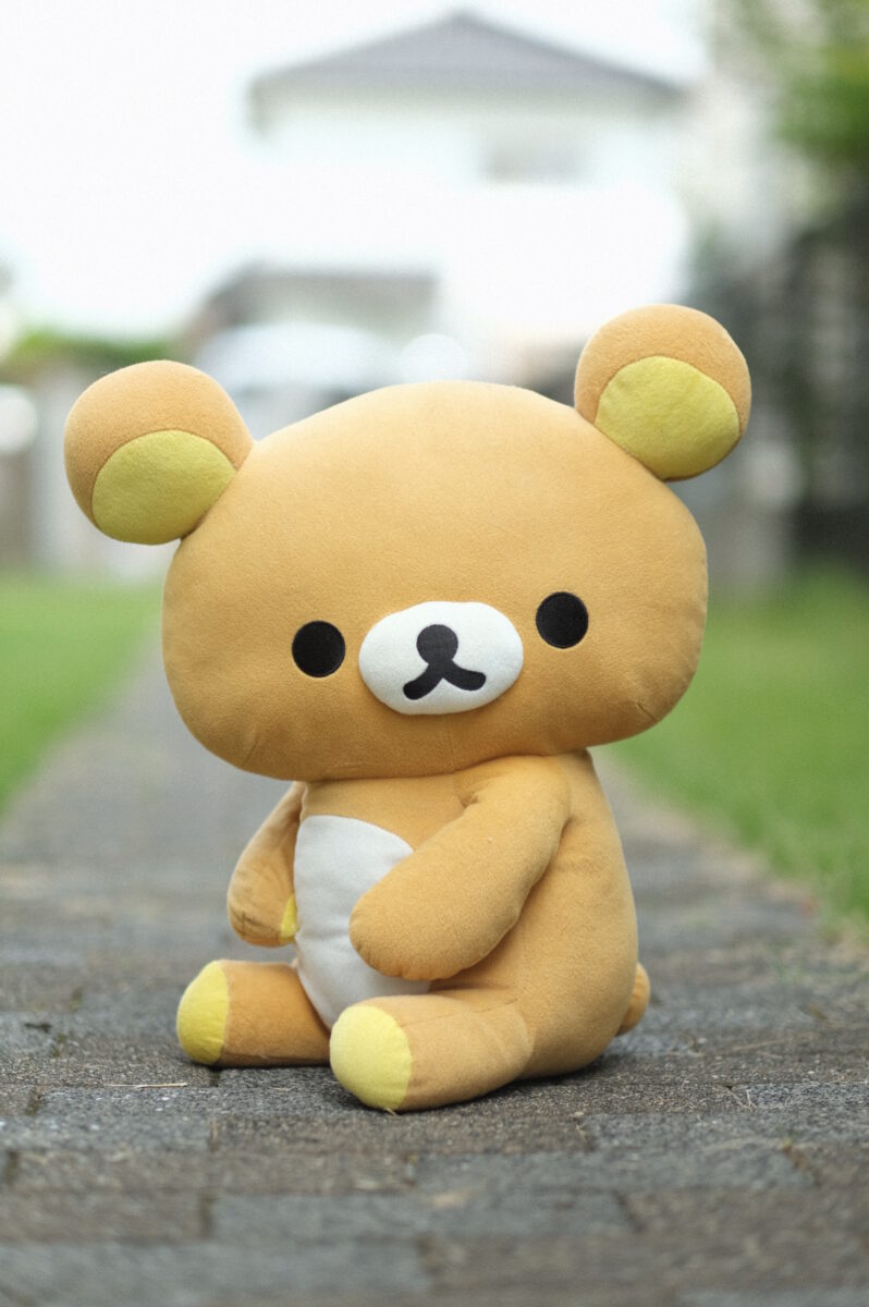 このリラックマさん、顔の縦幅は一般的な大人の顔面サイズと同じくらい。横幅は大人の顔面サイズより大きいくらいのサイズ感です。
